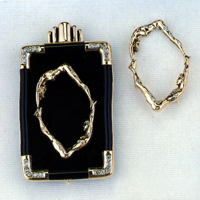 Pendant/Brooch: 14K Gold & Diamond with Black Onyx frame and